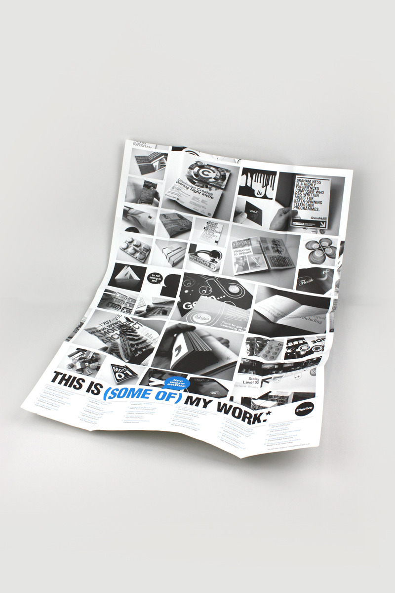 "We designed these two colour litho self promotional mailer/resumés for approaching Sydney based agencies at the end of 2008. The idea was to create a promotional piece which would have impact and showcase work examples and information as well as become a physical example of work in itself. The response to these was excellent and resulted in a variety of interviews at some of Sydney's top agencies."